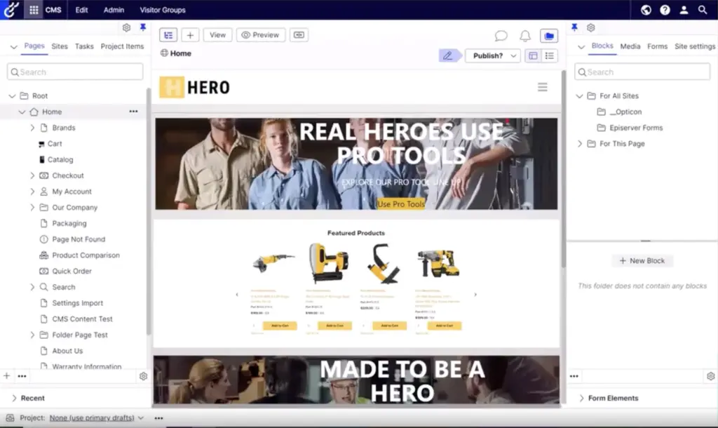 Ein Beispiel für ein CMS, das diese Anforderungen erfüllt, ist das Optimizely CMS. Es verbindet leistungsstarke Content-Management-Funktionen mit der Möglichkeit, Commerce-Logik tief zu integrieren – etwa über Optimizely Configured Commerce.
